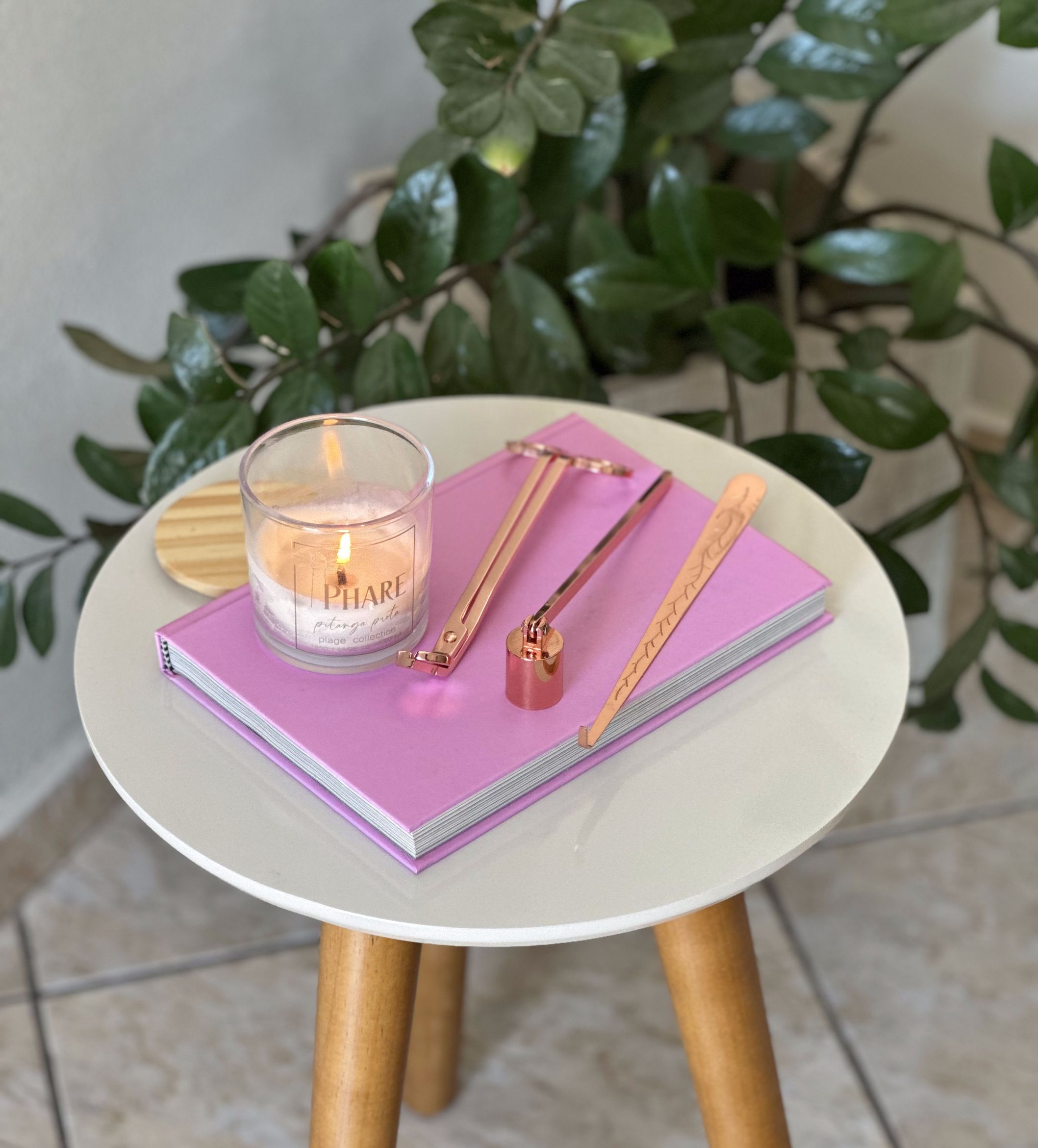 O kit é composto por aparador de pavio, abafador de chama e gancho para correção de pavio. Ao mesmo tempo que desempenham suas funções específicas, contribuem na composição da sua decoração com um estilo sofisticado e elegante.